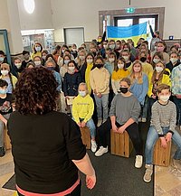 Marienschule Limburg Auftritt aller 5. Klassen für den Frieden Marienschule 12.05.2022 Auftritt aller 5. Klassen für den Frieden Am 07.04.2022 haben alle Schüler*innen der Stufe 5 den Song "Wozu sind