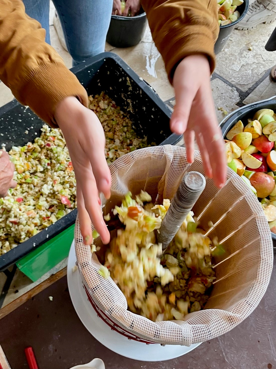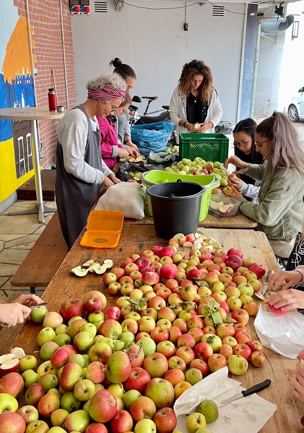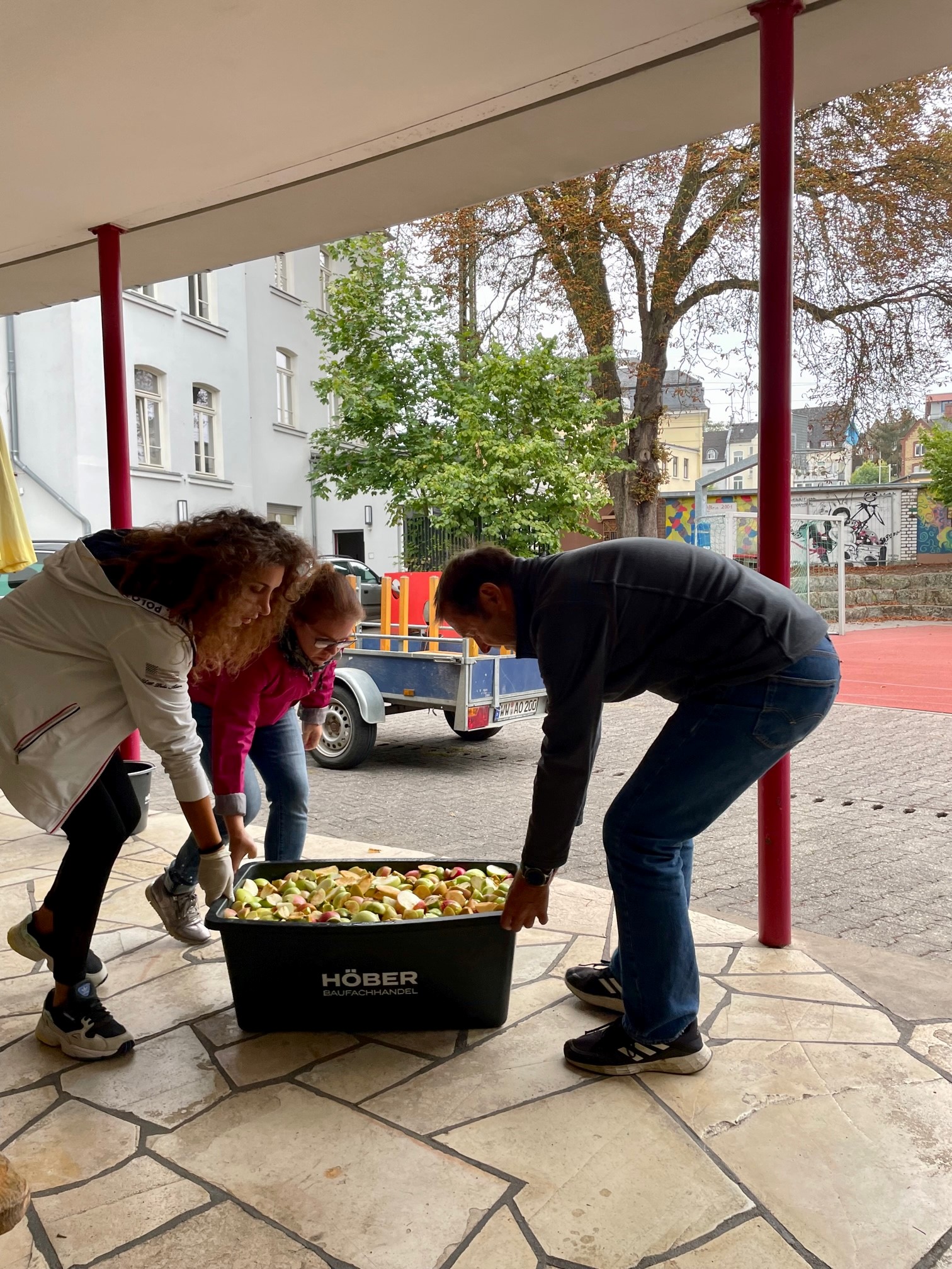 Exemplarisch für projektorientiertes Arbeiten mit Kindern und Jugendlichen haben die Studierenden der Fachschulklasse den Apfel, seinen kulturellen Wert, seine Lebensbedingungen und Verarbeitungsmöglichkeiten erforscht und erkundet. Spiele, Musik, künstlerische Aktivitäten und naturwissenschaftliche Experimente rund um den Apfelbaum und seine Früchte waren Inhalt der Projektarbeit. Neben der kreativen Arbeit mit Apfelbaumholz wurden 35 Liter Apfelsaft aus selbstgepflückten Äpfeln gepresst.