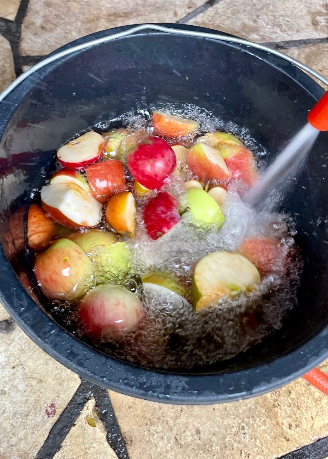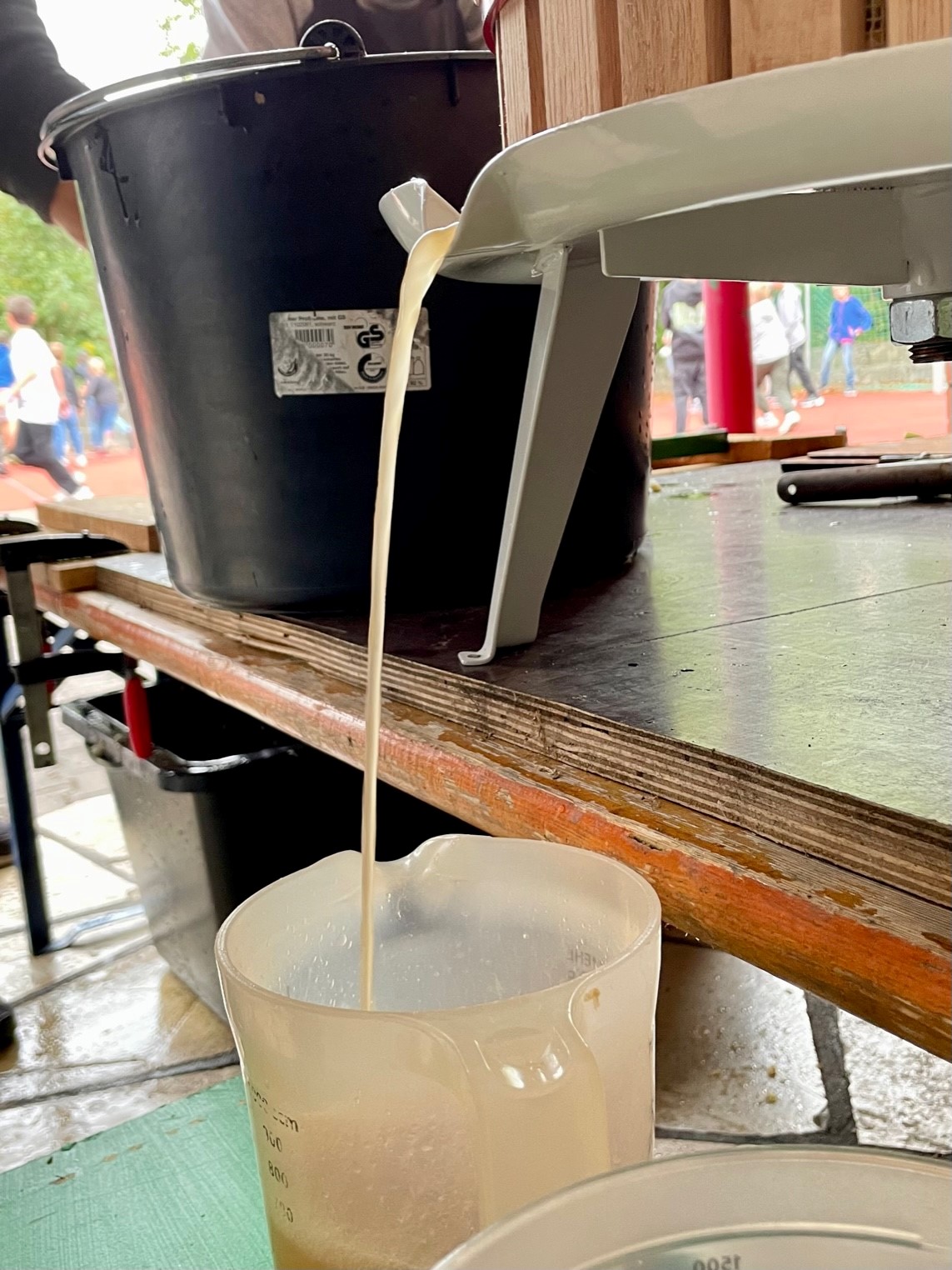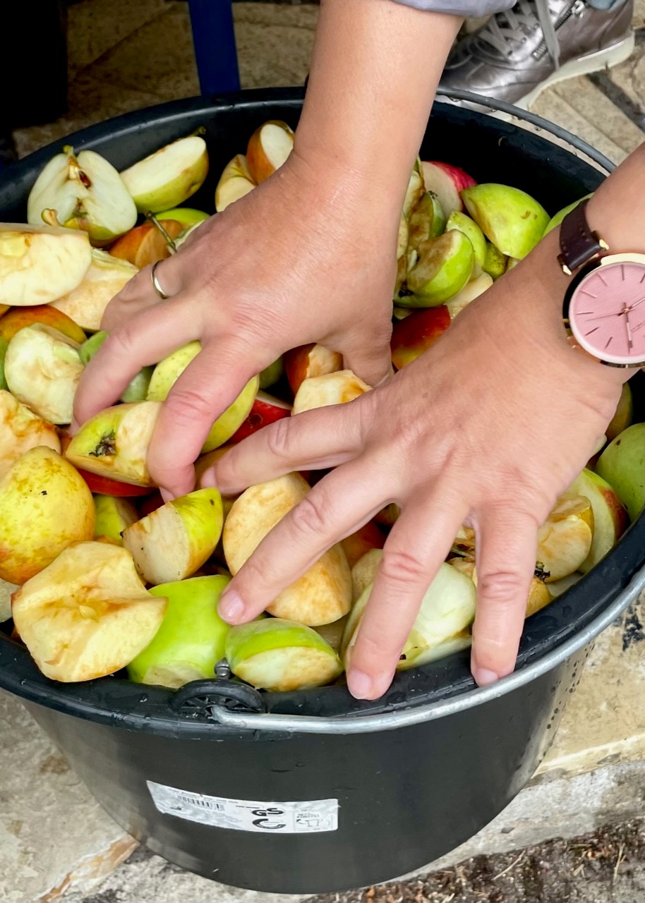 Exemplarisch für projektorientiertes Arbeiten mit Kindern und Jugendlichen haben die Studierenden der Fachschulklasse den Apfel, seinen kulturellen Wert, seine Lebensbedingungen und Verarbeitungsmöglichkeiten erforscht und erkundet. Spiele, Musik, künstlerische Aktivitäten und naturwissenschaftliche Experimente rund um den Apfelbaum und seine Früchte waren Inhalt der Projektarbeit. Neben der kreativen Arbeit mit Apfelbaumholz wurden 35 Liter Apfelsaft aus selbstgepflückten Äpfeln gepresst.
