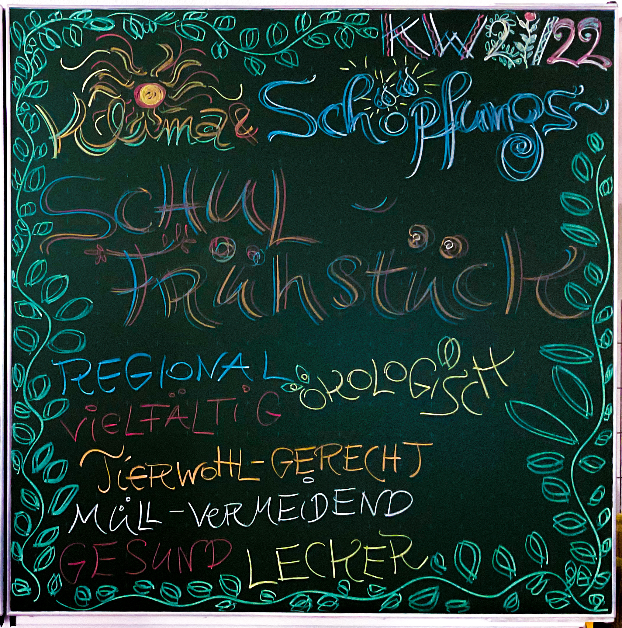 Hierbei kam die Idee eines nachhaltigen Frühstücks innerhalb aller Klassen und Kurse auf. Dieses hat am 25. Mai 2022 unter dem Motto „MACH MIT…“ für das gesamte Gymnasium stattgefunden. Ziele waren das Schaffen eines Bewusstseins für Umweltschutz und nachhaltige Ernährung, die praktische Umsetzung in Form eines nachhaltigen Frühstücks, die bewusste Reduzierung von Abfall beim Nahrungsmitteleinkauf, der Ideenaustausch und die Inspiration zum Thema Nachhaltigkeit.