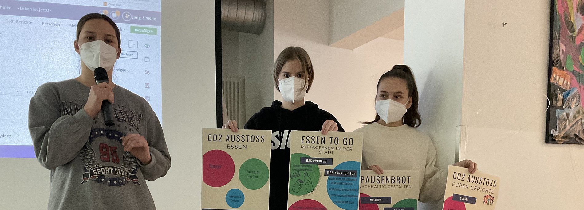Vom 28. bis 30. März 2022 fand an der Limburger Marienschule ein klassenübergrei-fendes Klimaprojekt zum Thema „CO2-Fußabdruck“ statt. Die Schülerinnen und Schü-ler der Jahrgangsstufe 9 erarbeiteten konkrete Maßnahmen, wie ihre Schule nachhalti-ger werden kann. Als Expertin unterstützte Martina Auer das Projekt, die Leiterin eines Büros für nachhaltige Gestaltung ist.