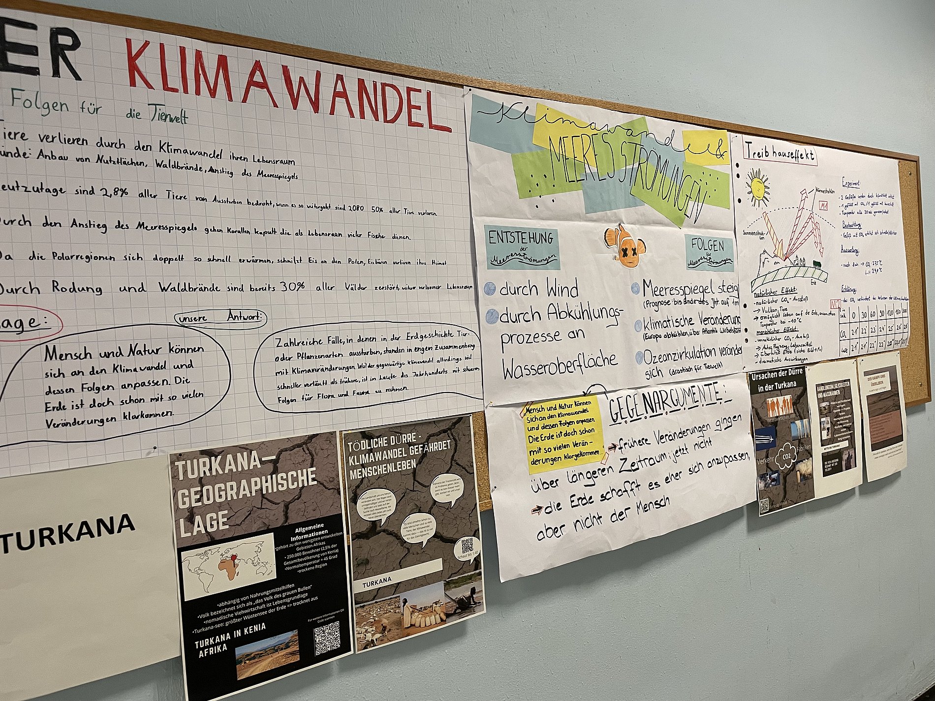 Am zweiten Tag recherchierten die Schüler*innen: Sie führten Umfragen und Messungen durch und erarbeiteten auf dieser Basis konkrete Handlungsmöglichkeiten sowie Maßnahmen in den Bereichen Ernährung, Konsum, Papier und Abfall, Mobilität und Energie für die Schule. Am letzten Projekttag widmete sich die gesamte Jahrgangsstufe 9 dem Thema Kommunikation. Hierbei wurden beispielsweise ein Punktesystem für den klimafreundlichen Schulweg erarbeitet, eine Klimakommission initiiert und ein Programm zur Visualisierung des Gas- und Stromverbrauchs der Schule und des damit verbundenen CO2-Ausstoßes erstellt. Außerdem erreichten die Schüler*innen eine Umstellung aller Schulrechner und Tablets auf die Suchmaschine „Ecosia“, welche ihre Einnahmen aus Suchanfragen nutzt, um Bäume zu pflanzen.