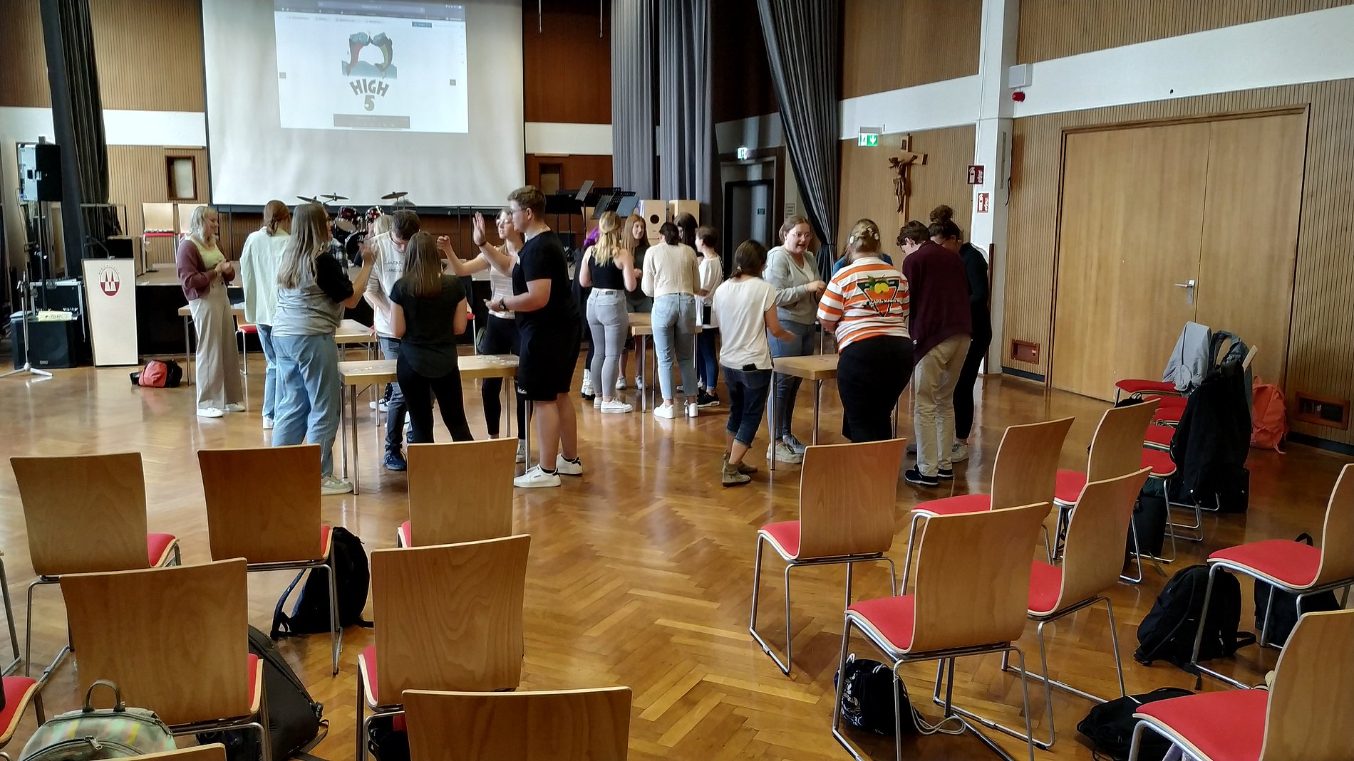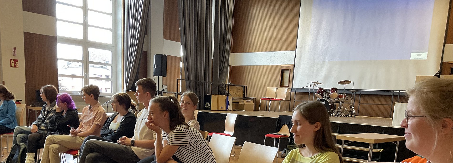 Am Freitag, den 15.07.2022, fand in der fünften und sechsten Stunde ein eher ungewöhnliches Zusammentreffen in der Aula der Marienschule statt: Die digitalen Helden des Gymnasiums trafen auf die Studierenden der Fachschule, also auf angehende Erzieher:innen. Es ging darum, sich gegenseitig über Pädagogik und rechtliche Fragen im Zusammenhang mit Medien, dem Internet und den Umgang damit auszutauschen.