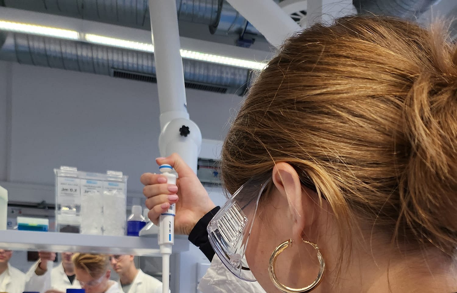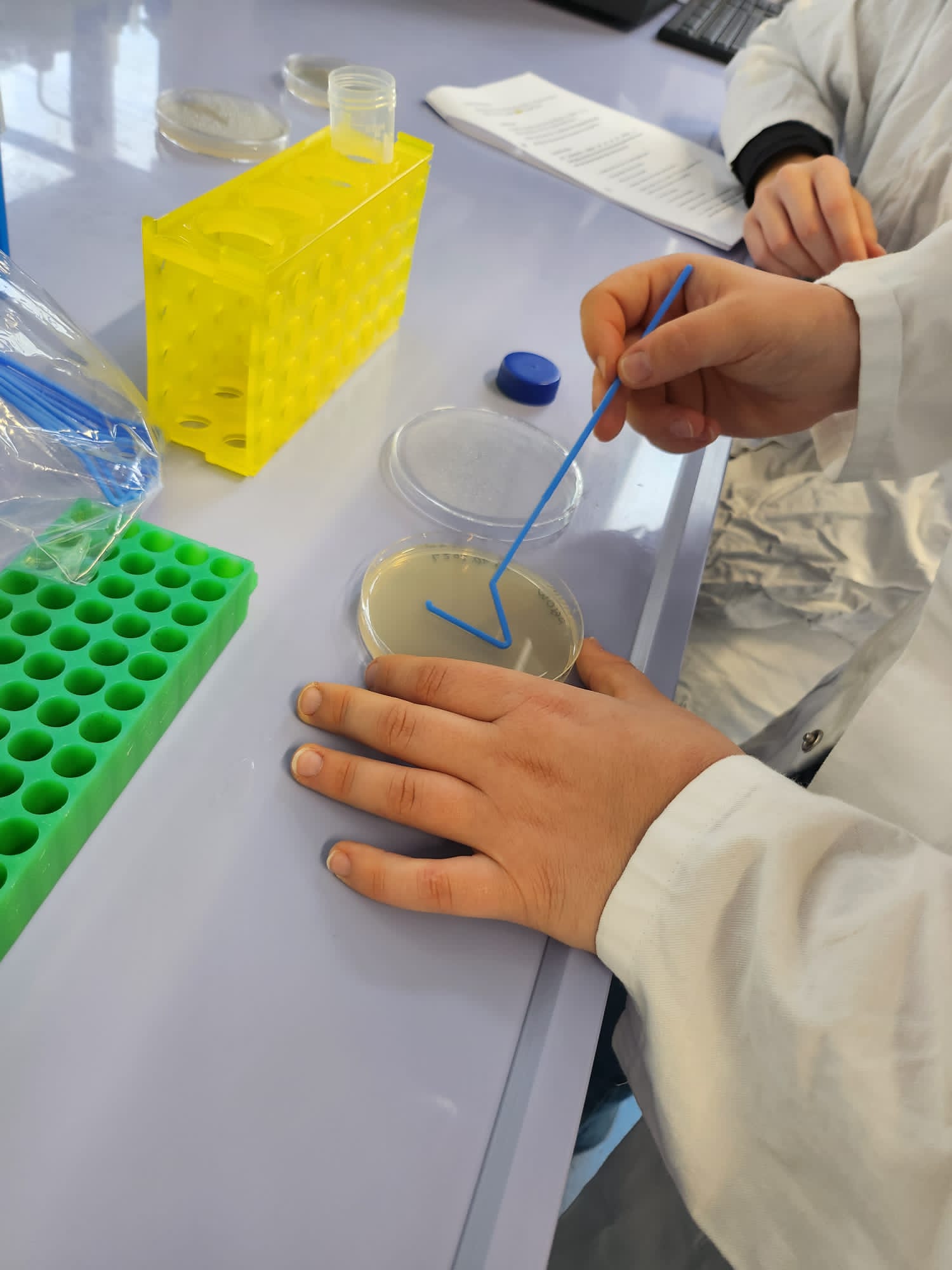 Nach einer kurzen Sicherheitsbelehrung im Hörsaal ging es ins Labor, wo wir selbst experimentieren durften. Passend zum Thema Genetik im Unterricht stellten wir gentechnisch veränderte Organismen her. Studentinnen aus dem dritten Semester Bioscience und zwei liebe Dozentinnen unterstützen uns dabei, die DNA von E.-coli-Bakterien so zu verändern, dass die Zellen fluoreszierten. Dazu wurden die Bakterien mit dem Plasmid pGLO zusammengebracht, das die Sequenz für die Fluoreszenz enthält, die ursprünglich aus einer Qualle stammt.