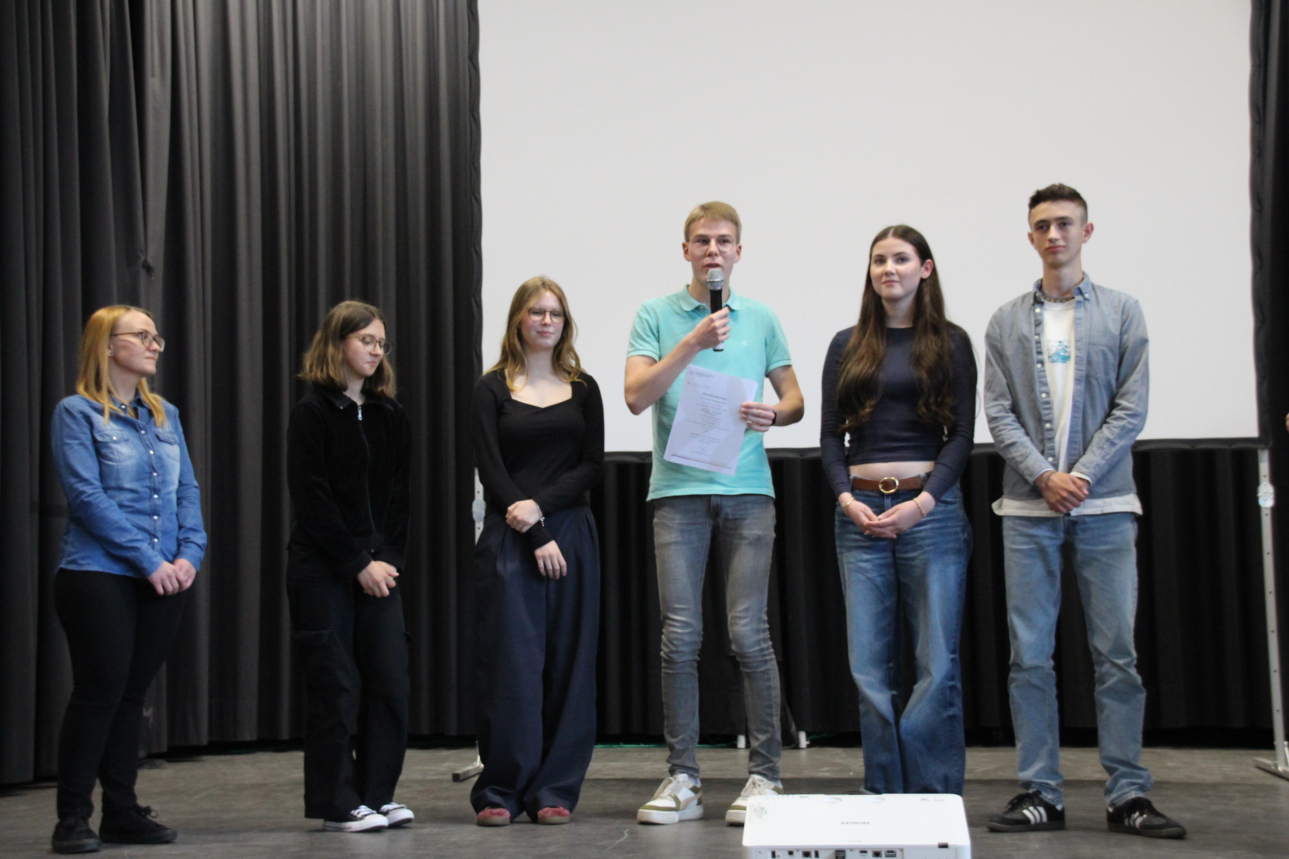 Diese Meinung hatte auch die hessische Landesjury des Wettbewerbs und zeichnete den Videobeitrag „Daily Political Talkshow: The right to vote“ mit einem zweiten Preis aus. Die Gruppe, bestehend aus Leonie Lauth, Verena Vogel, Finja Wagner, Jakob Krumpholz und Simon Breuer, wurde als Anerkennung ihrer Leistung zur Landespreisverleihung an der Viktoriaschule Darmstadt eingeladen. Sie wurden mit einem Preisgeld in Höhe von 200,-€ und einem Bücherpaket für ihre Leistung belohnt. Aber auch alle anderen Gruppen haben als Zeichen der Anerkennung für ihre Arbeit Urkunden verliehen bekommen, die sie im Rahmen einer schulinternen Übergabe erhalten haben. Alles in allem lässt sich also sagen, dass die Teilnahme ein voller Erfolg war und sich die zusätzliche Arbeit gelohnt hat!
