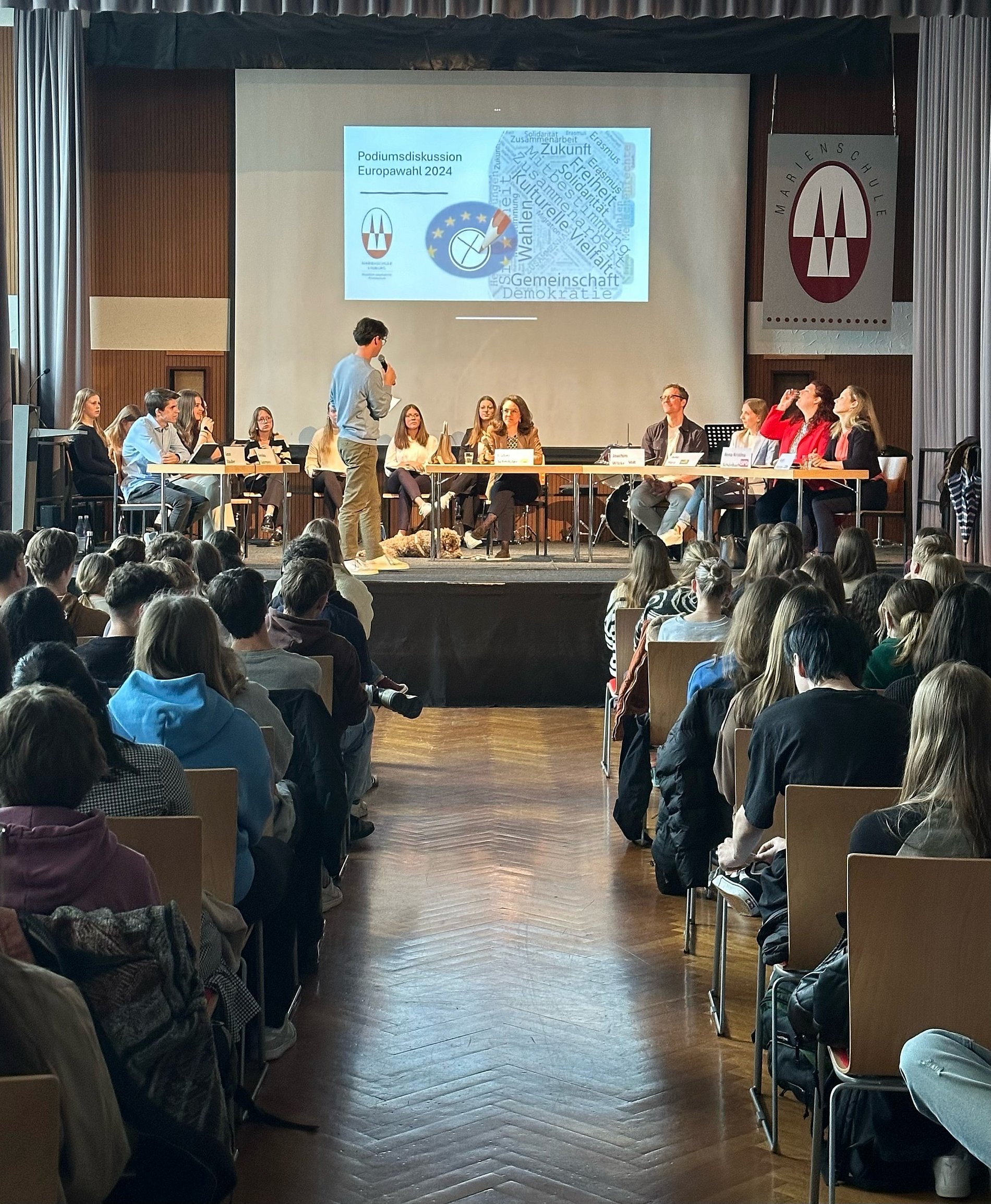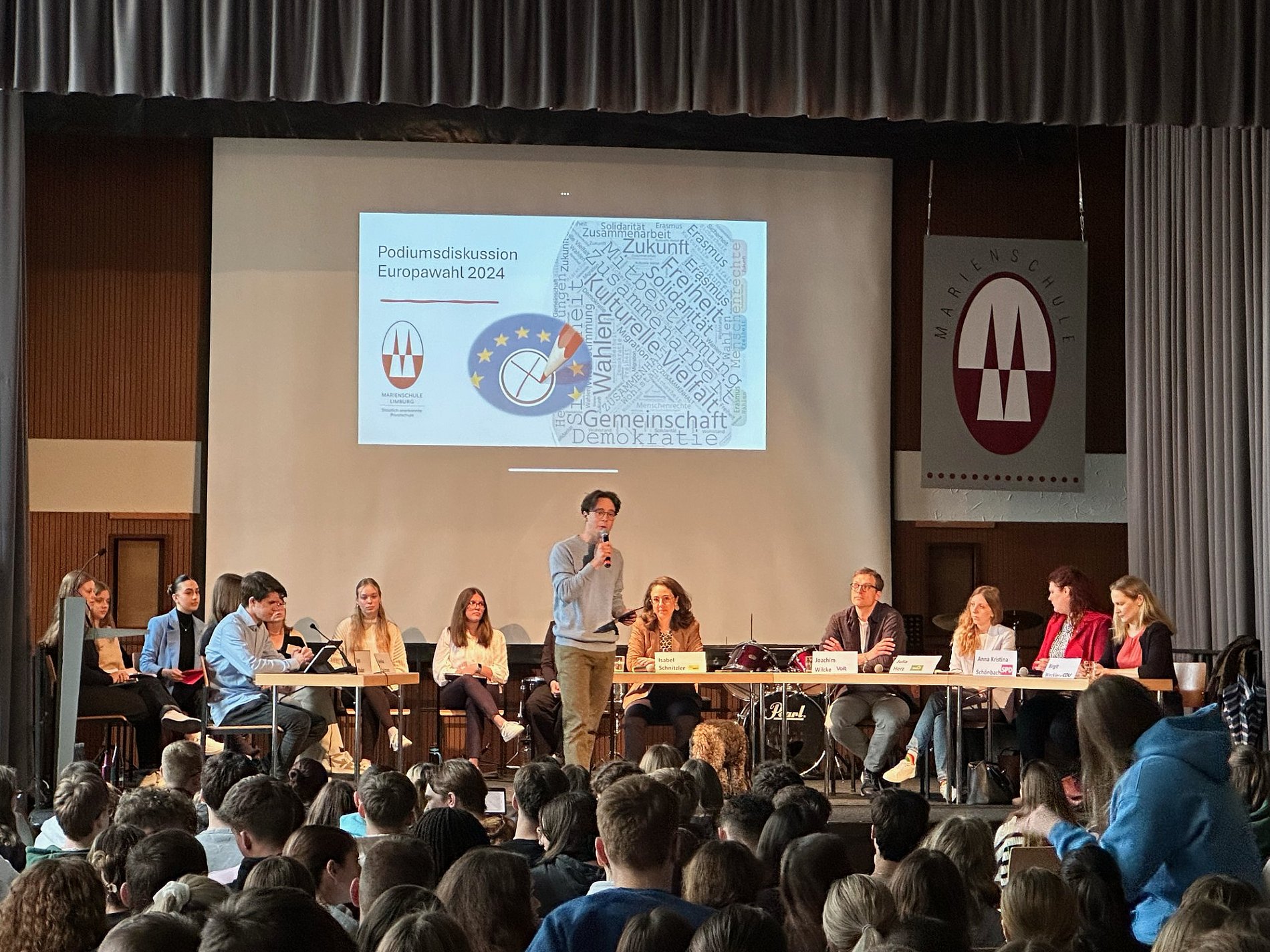 Am vergangenen Freitag fand an der Marienschule in Limburg eine Podiumsdiskussion zur Europawahl 2024 statt. Die Veranstaltung wurde von den Schülerinnen und Schülern organisiert und moderiert.