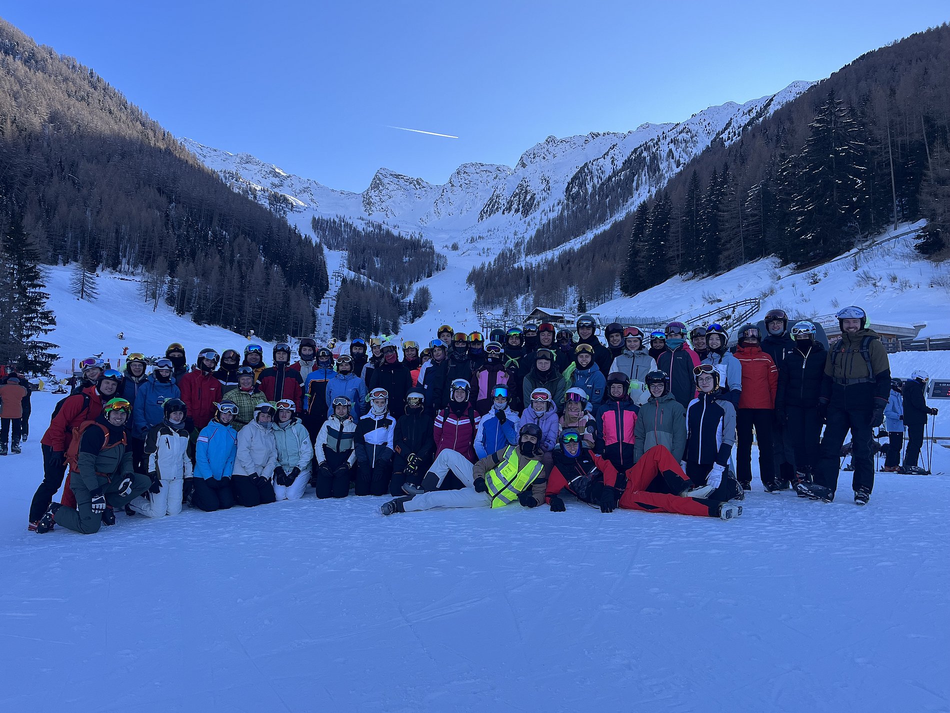 Nach langem Warten und mit einer gehörigen Portion Vorfreude ging es am Abend des 18.01.24 endlich los in das Ahnrtal in Südtirol. Wir waren 52 Schüler*innen aus der Q1, die sich gemeinsam mit sieben Lehrkräften auf den Weg in das Skigebiet ,,Klausberg‘‘ machten. Auch wenn die Extremwetterereignisse vom Vortag sowie am Morgen des Abreisetages die Abfahrt gefährdeten, konnte diese dann aber doch wie geplant stattfinden.