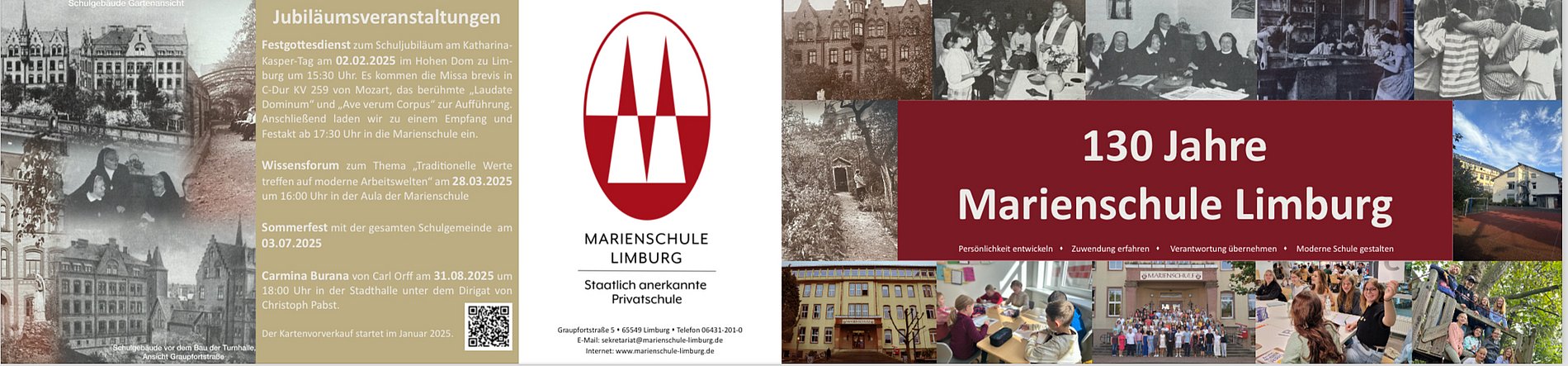 Die Marienschule Limburg feiert dieses Jahr ihr 130-jähriges Jubiläum. Seit ihrer Gründung im Jahr 1895 hat sich unsere Schule zu einem wichtigen Bildungszentrum in Limburg entwickelt, das viele Generationen von Schülerinnen und Schülern geprägt hat.