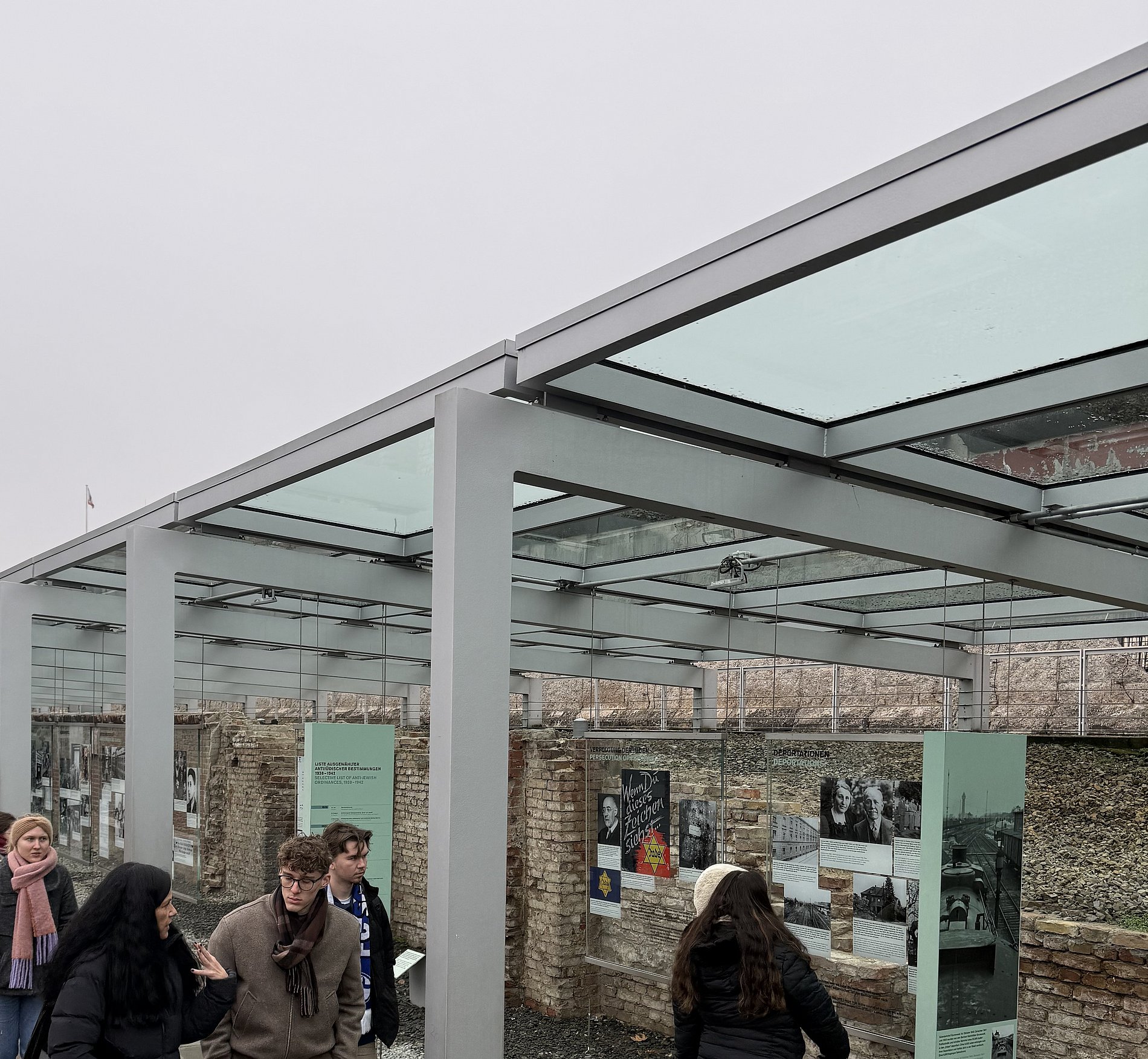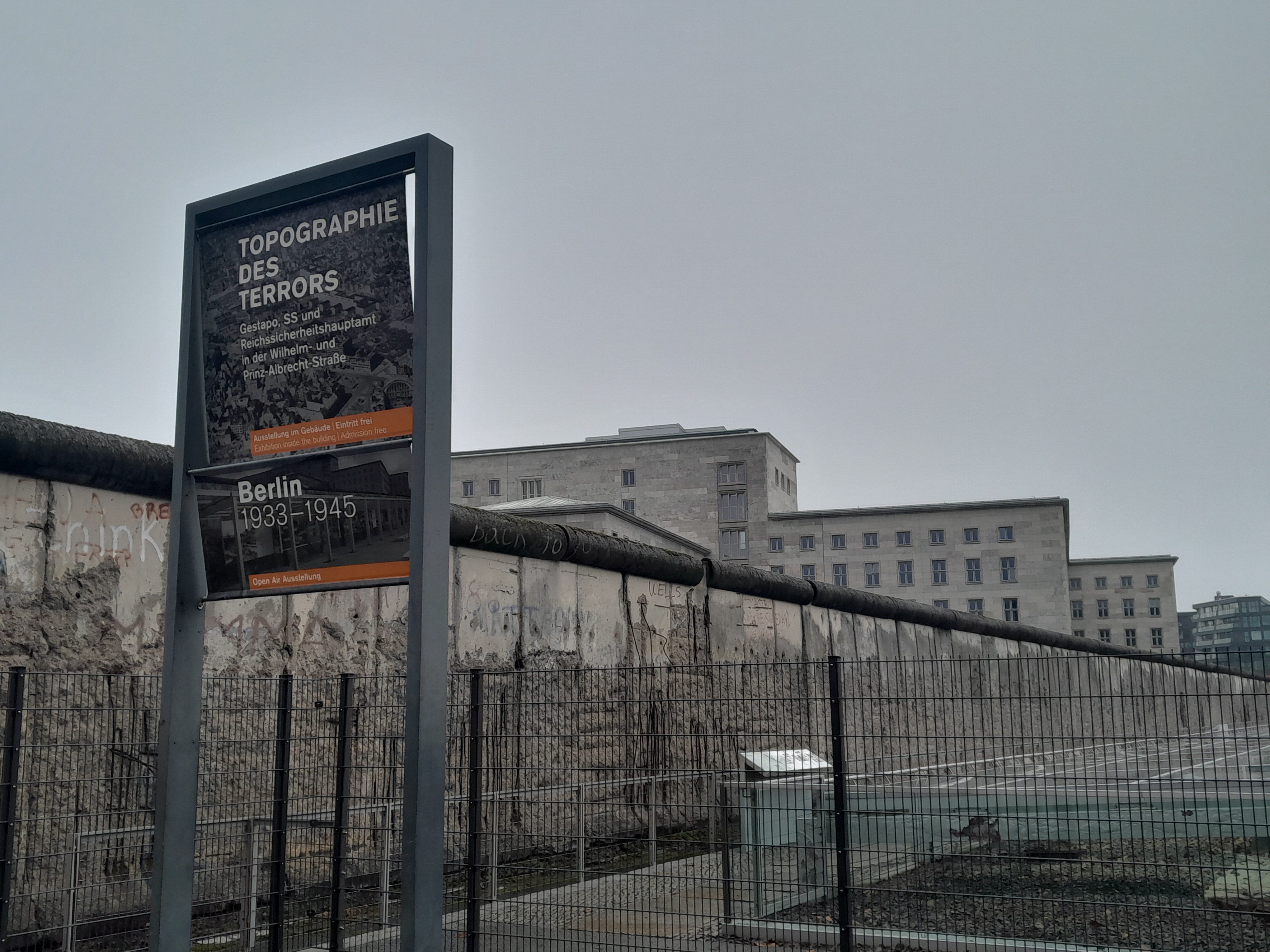 Bis zum gemeinsamen Abendessen war dann noch etwas Freizeit übrig, welche gut genutzt wurde, zum Beispiel mit einem Spaziergang zur Museumsinsel. Im Gegensatz zum Anreisetag blieb am Abreisetag noch Zeit für einen letzten Programmpunkt. Ab halb Zwölf führte uns unser Weg durch das diesmal nebelige Berlin vorbei am Bundesrat hin zur Topografie des Terrors. Diese Gedenkstätte ist auf dem Prinz-Albrecht Gelände lokalisiert, auf welchem sich seit Mitte der 1930er Jahre bis 1945 Dienststellen der Gestapo, SD und SS befanden. Dank dem kompetenten Angebot der sich vor Ort befindenden Gedenkstätte war es uns möglich, eine einstündige, sehr bereichernde Führung durch die Ausstellung zu erhalten. Hier lernten wir einiges über die ehemalige Nutzung des Geländes und den Terror mit denen Gestapo und SS gegen die Opfer der Nazis vorgegangen sind.