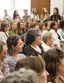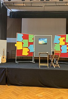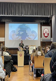 Marienschülerinnen präsentieren im Rahmen des Bürgerfests zum Paulskirchenjubiläum in der Evangelischen Akademie Frankfurt ihren Videobeitrag.