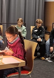 Am 7.12.2023 fand in der Aula unser Schulentscheid des Vorlesewettbewerbs statt. Dazu waren alle Schülerinnen und Schüler der 6. Klassen eingeladen.